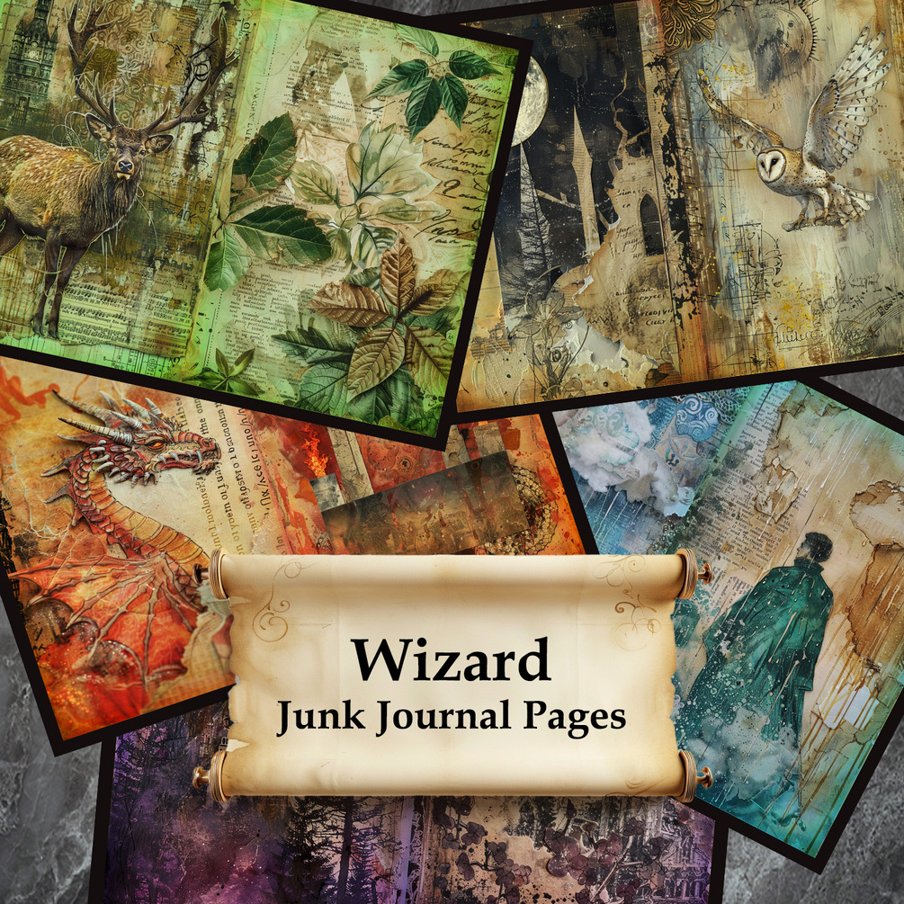 Dive into a world of magic, mystery, and medieval enchantment with our stunning digital download of junk journal print pages, inspired by the ancient art of alchemy and the lofty essence of a wizard's domain. Perfect for crafters, scrapbookers, and fantasy enthusiasts, these full-color pages bring a touch of mystical charm to your creative projects.